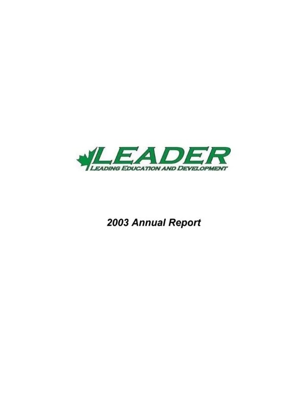 About the LEADER Project Annual Reports 2025 2024 2023 2022 2021 2020 2019 2018 2017 2016 2015 2014 2013 2012 2011 2010 2009 2008 2004 2003 2002 2001